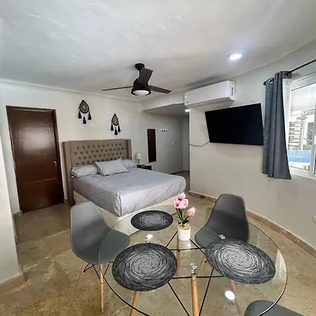 地区景点包括距离旅馆仅有50米的昆塔阿勒格利亚购物中心,距离库尔海滩俱乐部有0.7公里. 客人还可以在Los Aguachiles Calle 34享用加勒比佳肴,从公寓走5分钟就到. 公寓位于Coco Bongo和第五大道旁边.